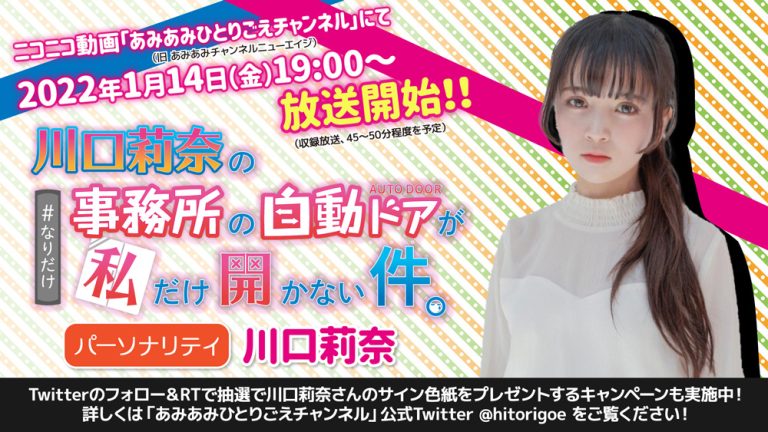 声優・川口莉奈によるWeb番組「川口莉奈の事務所の自動ドアが私だけ開かない件。」が、1月14日(金)よりスタートする。 川口莉奈の事務所の自 […]