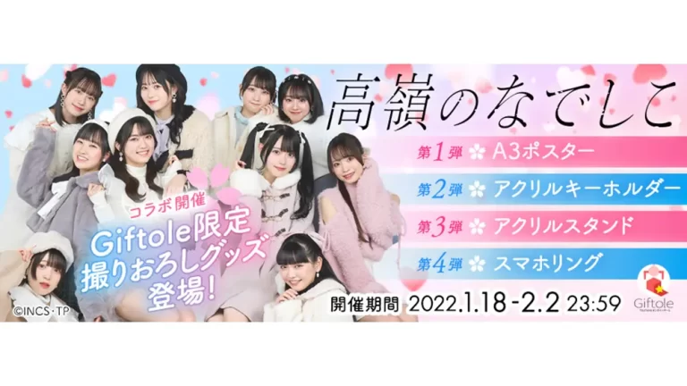 オンラインクレーンゲーム「Giftole」に、10人組アイドルグループ・高嶺のなでしこのオリジナルコラボグッズが登場し、このコラボを記念した […]