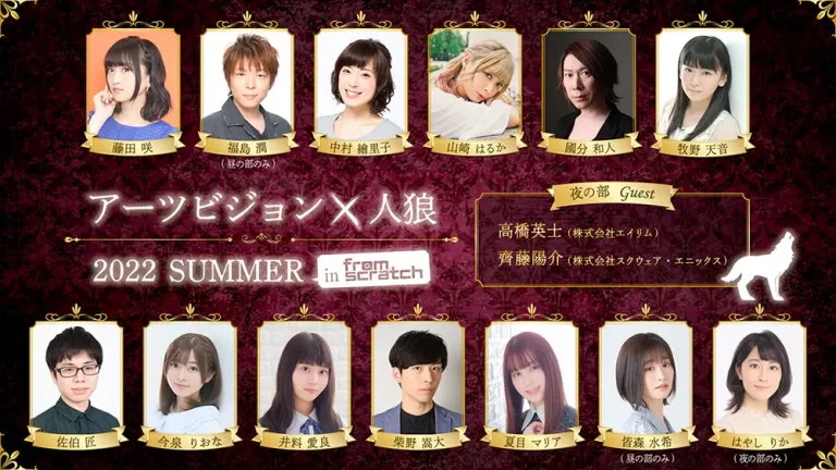 藤田咲、中村繪里子ら出演の「アーツビジョン×人狼 2022 SUMMER in from scratch」、出演者の意気込みコメント動画が公開!
