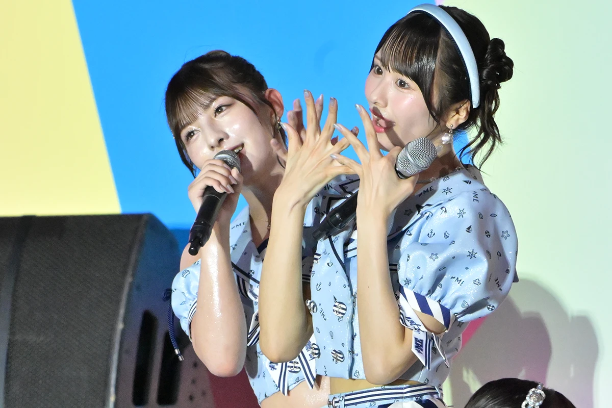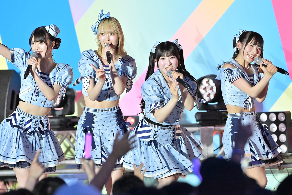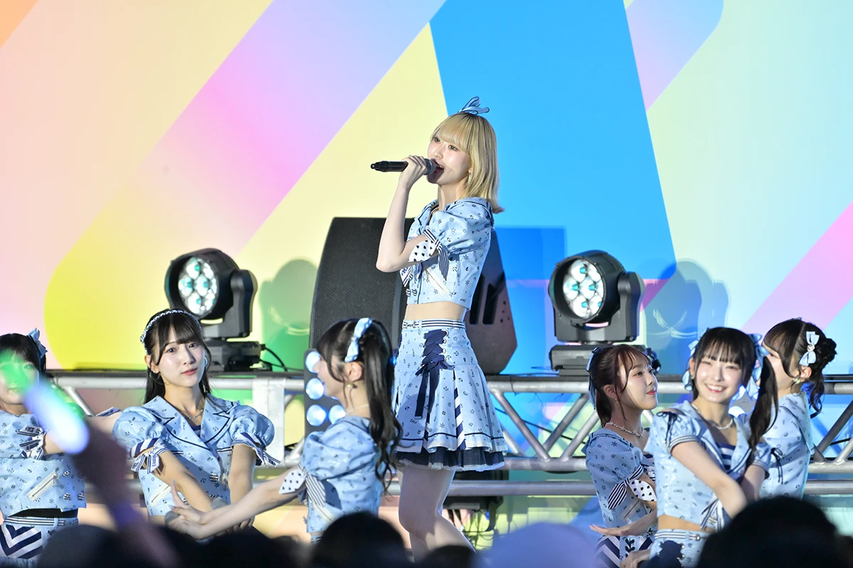 2曲目は繊細なソロパートが胸を打つ『君はこの夏、恋をする』、次はタオルを回しながら歌う夏ソング『クルクルかき氷』を続けて披露。間奏で客席にウェーブを起こすなど、ファンを巻き込みながらライブを盛り上げていく。