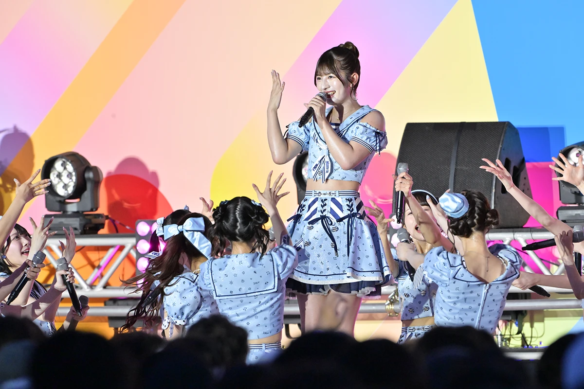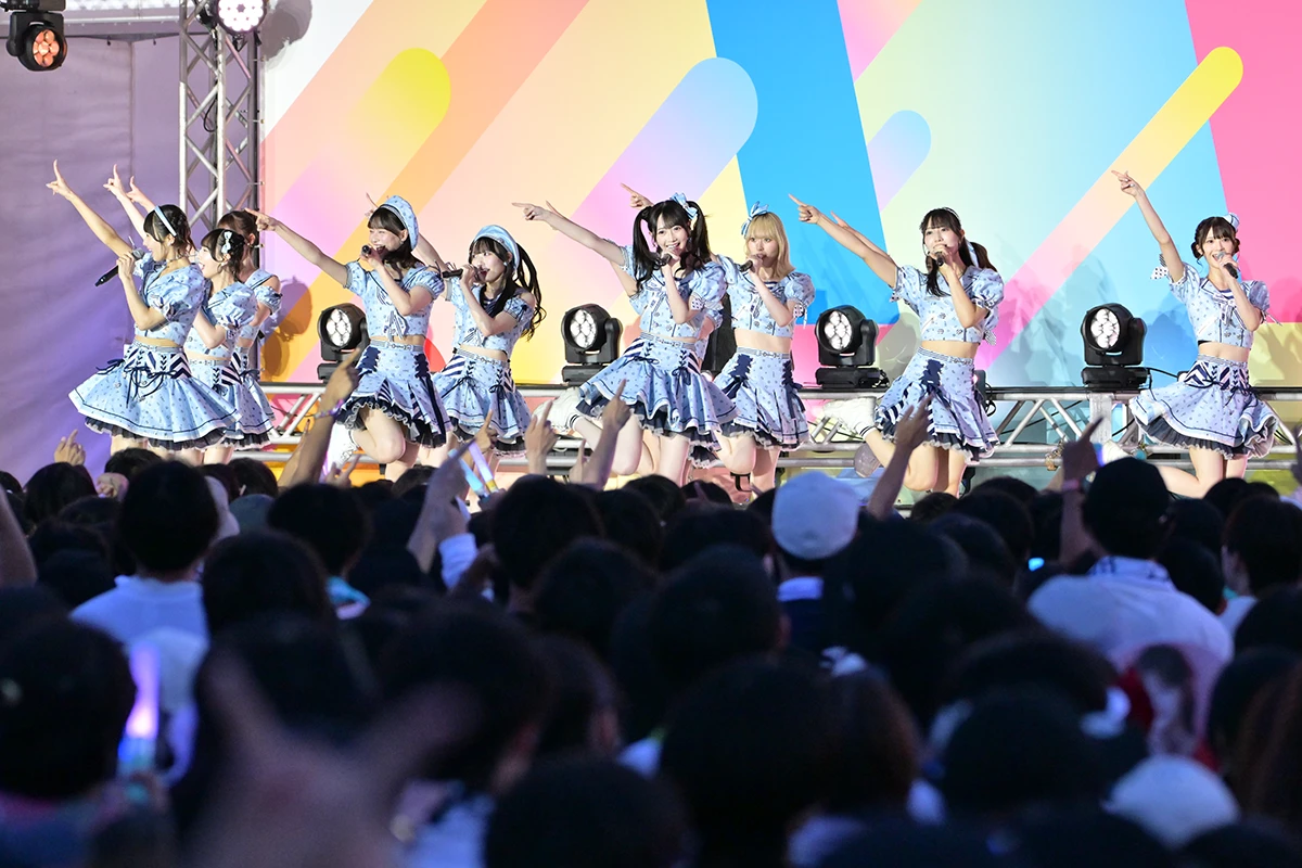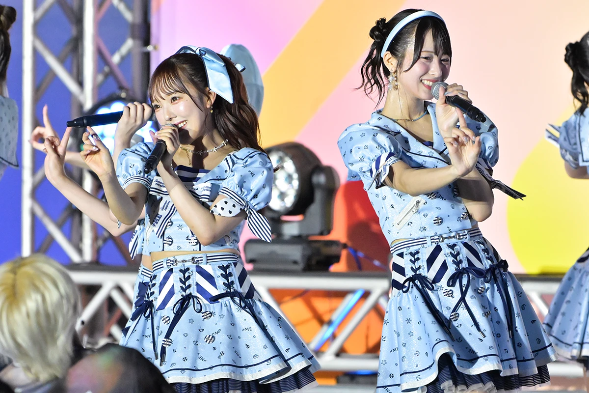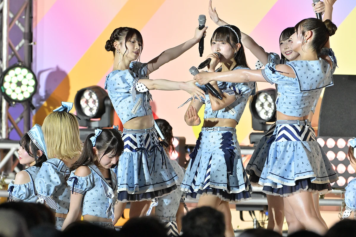MCでは「続けて6曲を披露させていただいたんですけど、みなさん盛り上がってますか? 早速、タオルとかペンライトとかいっぱいふりふりしてくれてありがとうございます」と笑顔を見せるメンバーたち。冨田菜々風が「続いての曲が最後です。今回もステージに立たせていただいて、この曲を歌わせてもらえることをありがたく思います。世界で一番アツい時間、作っていけますかー!?」と呼びかけると、ファンのボルテージは最高潮に。