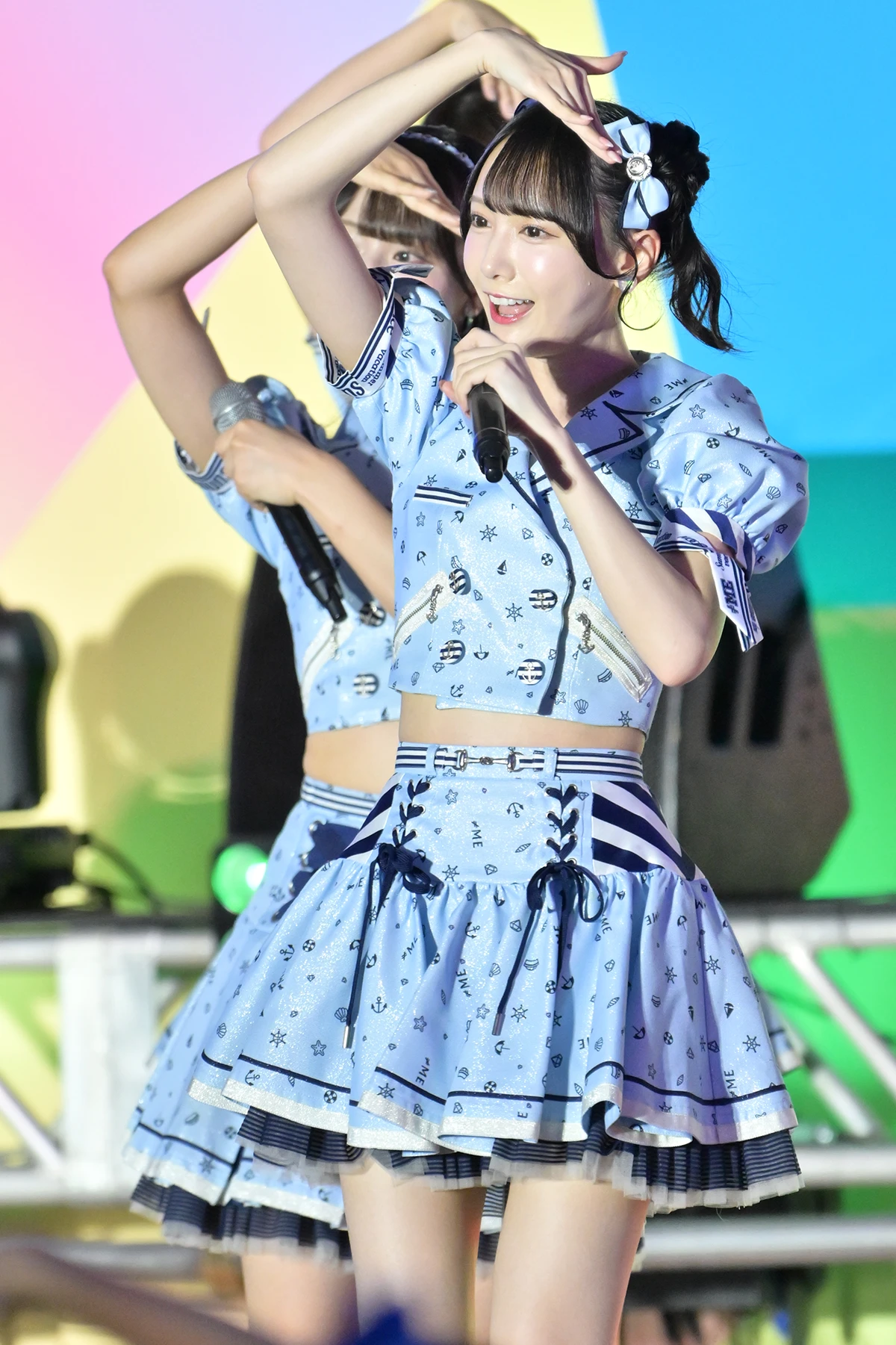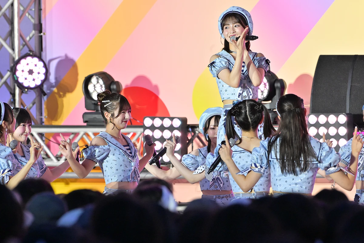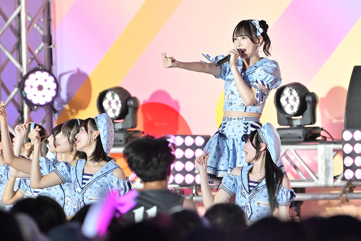 MCでは「続けて6曲を披露させていただいたんですけど、みなさん盛り上がってますか? 早速、タオルとかペンライトとかいっぱいふりふりしてくれてありがとうございます」と笑顔を見せるメンバーたち。冨田菜々風が「続いての曲が最後です。今回もステージに立たせていただいて、この曲を歌わせてもらえることをありがたく思います。世界で一番アツい時間、作っていけますかー!?」と呼びかけると、ファンのボルテージは最高潮に。