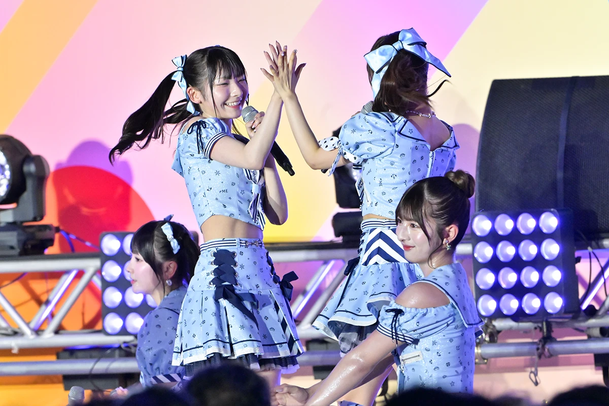 指原莉乃プロデュースのアイドルユニットで、=LOVEの後輩にあたる≠ME。通称・ノイミー。2019年にTIFのステージでデビューし、今では常連ユニットととしてTIFを盛り上げる存在に。今年は最終日のHOT STAGEで、姉妹ユニット3組が続けてステージを披露。≒JOYからバトンを受け取り、ノイミーがラストに向けてより一層ライブを盛り上げる。