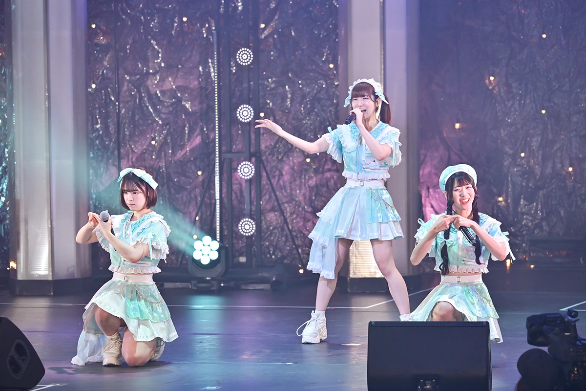 日南田まほ:普段のパフォーマンスだと、入場SEから入ってパフォーマンスをしてるんです。けど、今回のNIGの決勝のパフォーマンスでは、「私たちの思いを伝えよう」ということで、板付きでお話をさせていただいて、私たちの思いを伝えた上でパフォーマンスをさせていただきました。その演出だけじゃなくて、私たちの3人でできるだけいいパフォーマンスやろうということで、レッスンもたくさんして挑みました。