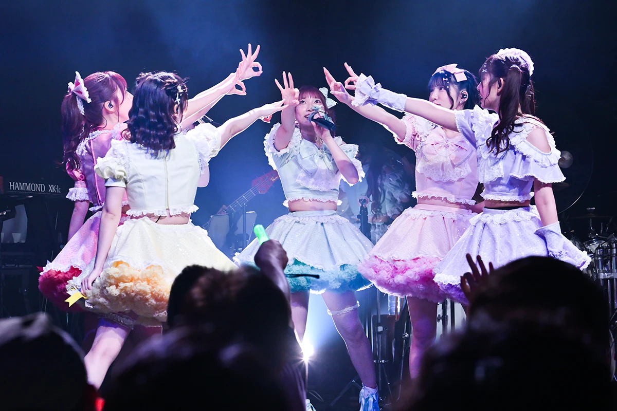 さらにイントロでクラップを煽りつつスタートした『青春Shower』では、メンバーに合わせてサビでのジャンプ&横移動がフロア全体に発生! 興奮は完全にピークへと達する。最後は、ピアノのアルペジオに続いて、配信リリースがスタートしたばかりの『LinkRing』に。