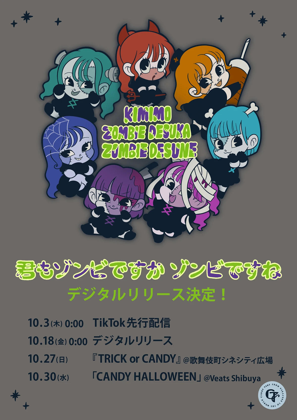 CANDY TUNEの新曲「君もゾンビですか ソンビですね」は、いたずら心をくすぐるキュートなアレンジとキャッチーなサビが印象的なハロウィンソング。