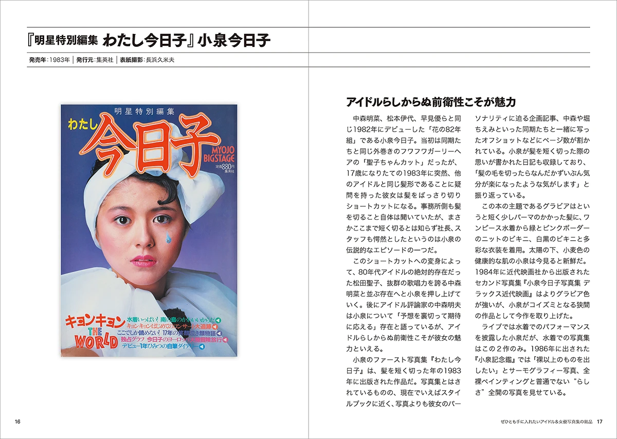 掲載されるのは様々な時代を彩った女性アイドル・女優・グラビアアイドルたちの写真集で、“一見の価値ある話題作”から“隠れた名作”まで108タイトルを紹介した、日本初の「グラビア写真集のガイドブック」である。中古市場やオークションサイトが活況を呈し、過去の作品を手に入れることも容易となった現在、写真集購入の「手引き書」としても活用したいガイドブックだ。