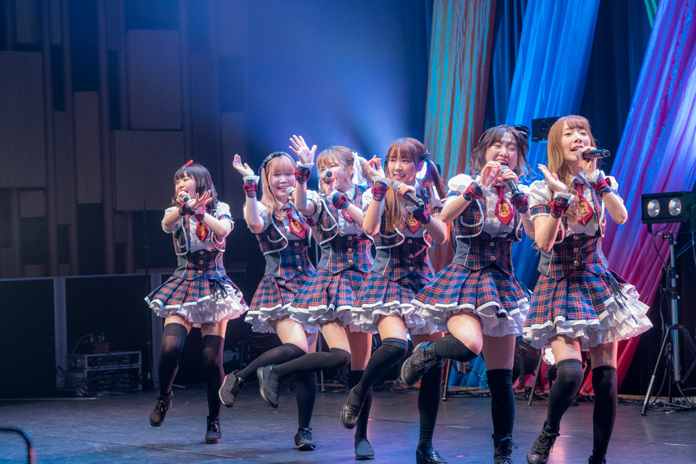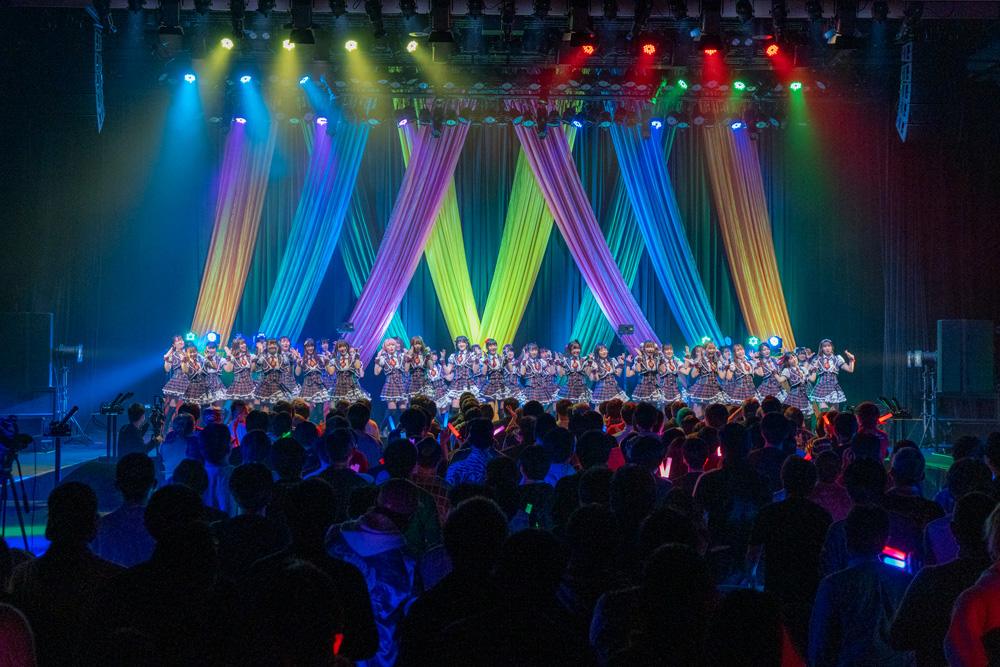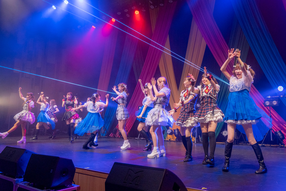 選抜メンバー9名がステージに登場すると、昨年夏に発売された「My Independence」を“孤独を恐れずにすすめ”と力強くパフォーマンス。七海、堀内、有村がレジェンドメンバーを呼び込み、「Oh Yeah!!」へ。オーディエンスと”Oh yeah‼”とめいっぱい笑顔で盛り上がると、朝倉、もえあず、熊本、小嶋、寿、神崎、本木が残り、もえあずから10年前は楽屋がなくて会場の机の下に座っていたという苦労話が飛び出し、朝倉は今日来てくれているプロデューサーが昔からの方、最近来て下さるようになった方、色んな時代に私達を応援して下さっている方が勢揃いしていて同窓会みたい、と感慨に耽る。
