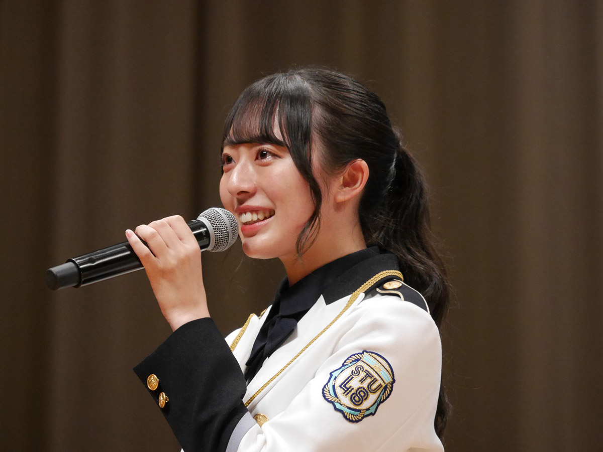 続いて新選抜に選ばれた4人から、川又は「前回は選ばれなかったことに納得してしまった自分がいて悔しい思いをしたのですが、今回、自分的にも選抜に入りたいと意気込んで頑張っていたので凄く嬉しいです。ありがとうございます。」吉崎は「私は何かSTU48のためになれているのかなと迷っていたんですけど、今こうやってこの場所に立てていることが凄くありがたくて、ファンの方々のおかげなのでこれからも頑張っていこうと思います。ありがとうございます。」