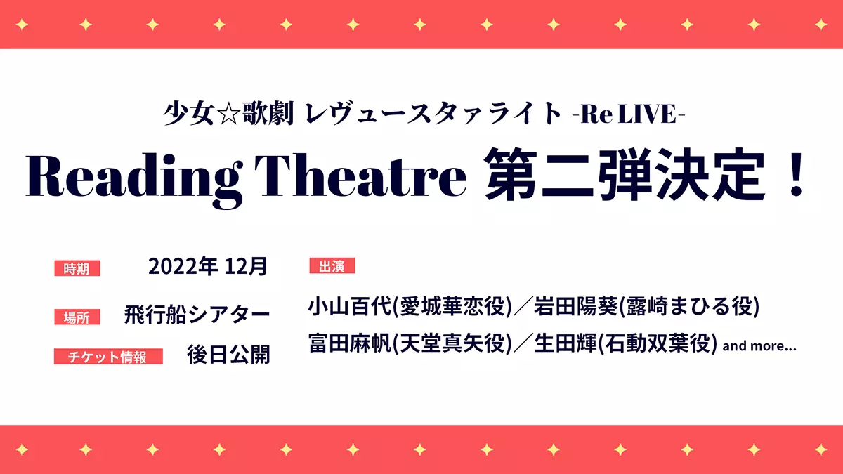 ◆少女☆歌劇 レヴュースタァライト -Re LIVE- Reading Theatre 第2弾 開催決定