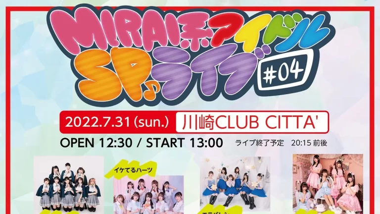 7月31日(日)川崎CLUB CITTA’にて開催予定、地上波好評放送中の品川庄司がMCを務めるバラエティ番組『MIRAI系アイドルTV』SPライブ#04、タイムテーブル解禁された!