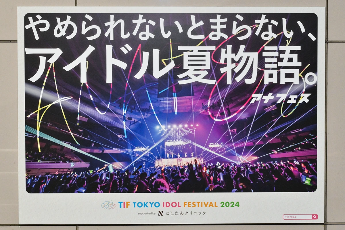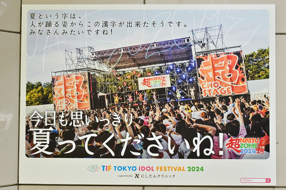 世界最大のアイドルフェス「TOKYO IDOL FESTIVAL」(以下、TIF)を主宰するフジテレビTOKYO IDOL PROJECTは、2024年8月2日(金)、3日(土)、4日(日)の3日間、お台場・青海周辺エリアにて開催する「TOKYO IDOL FESTIVAL 2024」(以下、TIF2024)に合わせ、7月29日(月)から8月4日(日)まで、りんかい線・東京テレポート駅構内で交通広告を展開する。