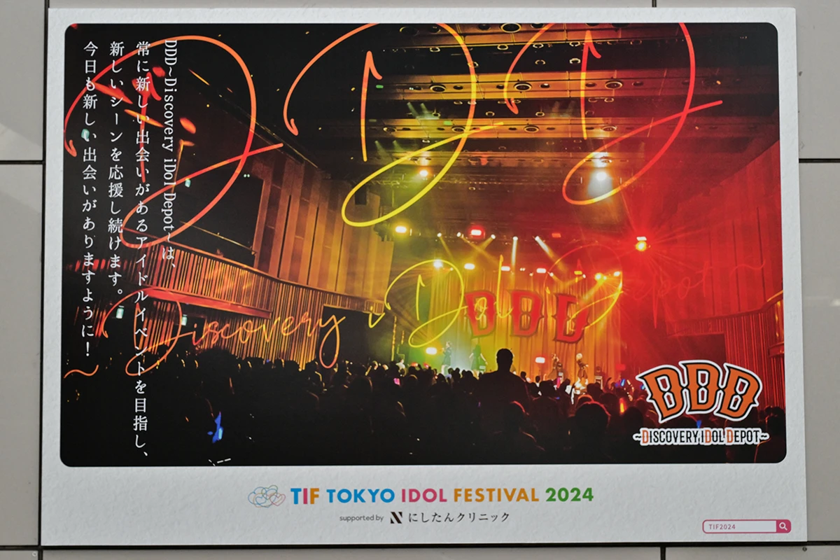 「TIF2024 PR大使」がモデルを務めた9種と、9つのアイドルイベントとコラボしたデザインを東京テレポート駅構内で掲出!