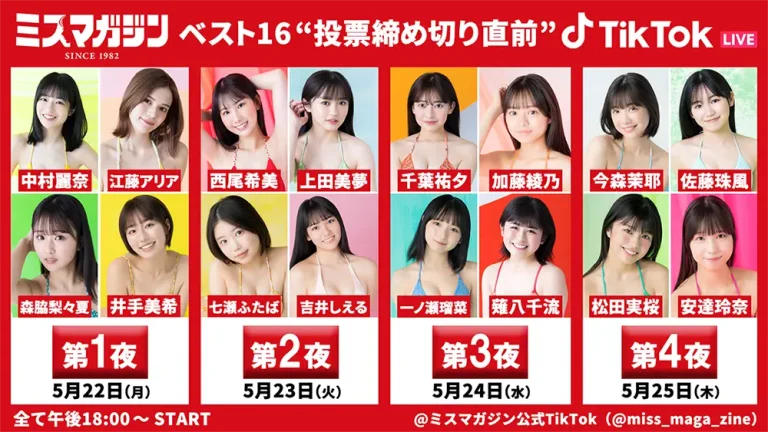 「ミスマガジン2023」のセミファイナルに進出した16名が出演するLIVE配信が、5月22日(月)~5月25日(木)の4日間連続でミスマガジ […]